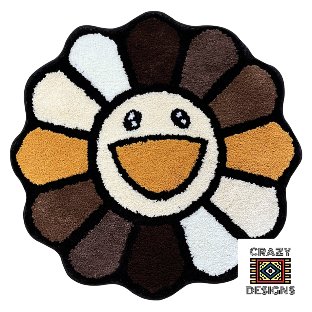 Custom Tufted 'Murakami' Happy Sunflower Non-Slip Carpet Rug